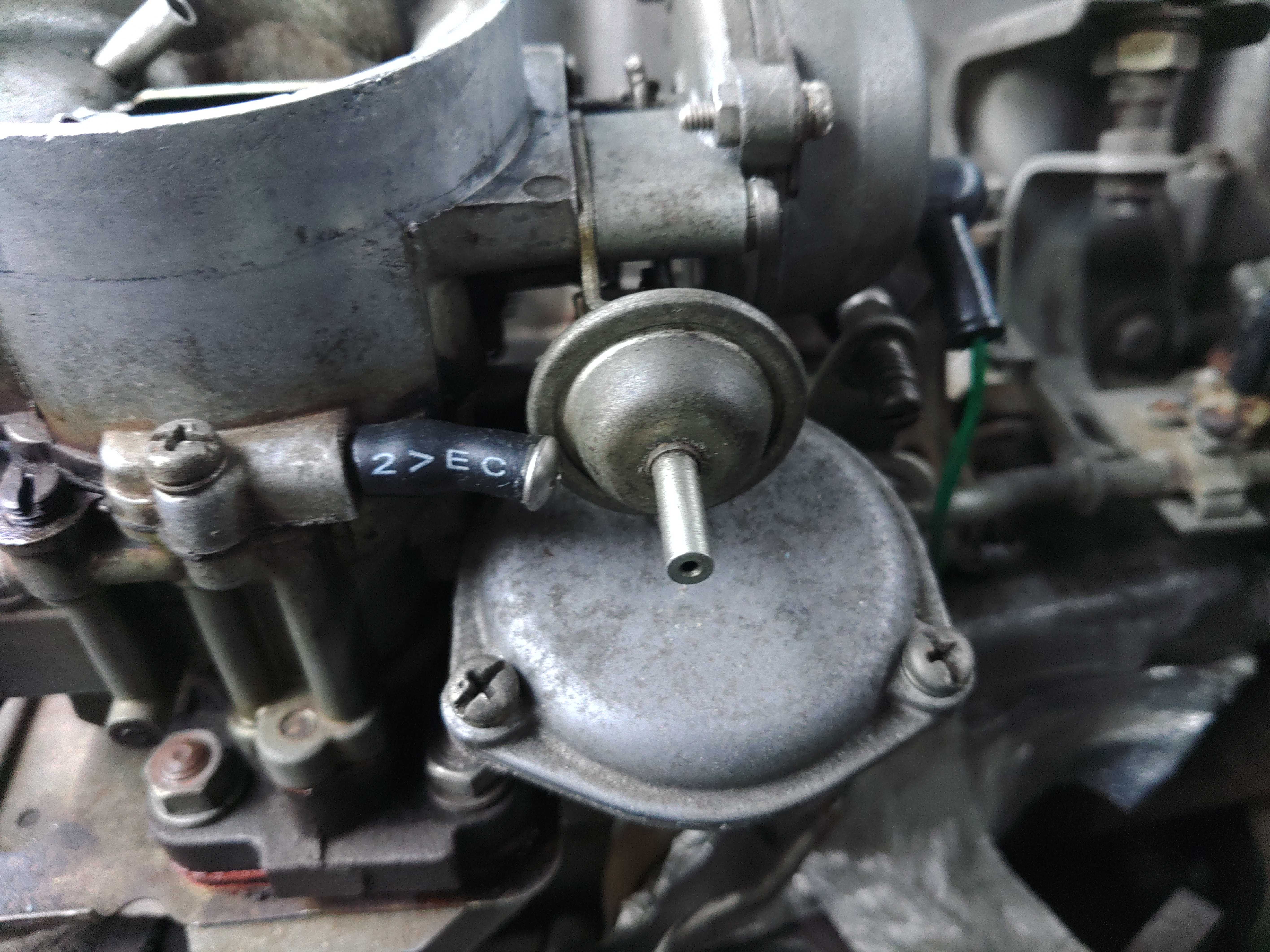 スプリングをかけるとこなのですが、画像のようにプラスドライバーの先端で示した辺り。チョークバタフライのリンケージの繋ぎ目にかけてください。下側は新たにステーを追加で、そこにかけてください。 これをどれだけの方々が施工されるかわかりませんが参考になればと思い投稿しました。 よろしくお願いします。 ![]() 1765102153.jpg/1353KB |