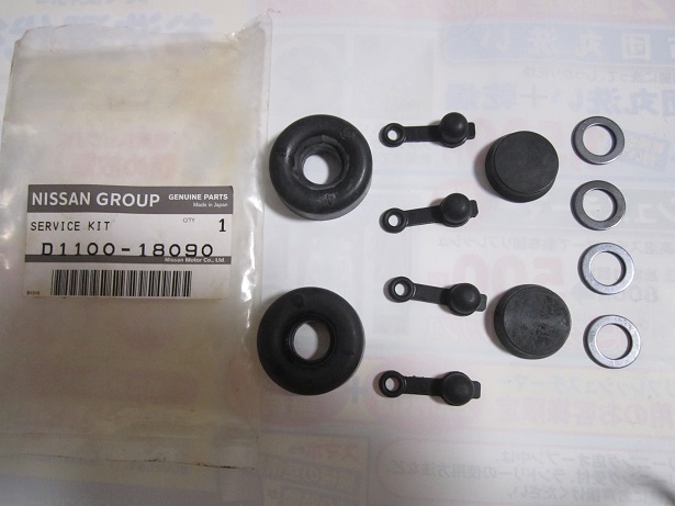 最新の画像は撮り忘れたので、後日アップしなおすことにして、いったん新品時の画像を載せておきます。「A」の部品です。2年で劣化なので、ココは社外品は使わずに最初から純正部品にすべきかなと思います。純正品はゴム部品ながら20年以上経っても問題ないことが多いです(苦笑) 同様に、社外品ではなく、純正品(いままで装着されていた部品と組み替えても可)にしたほうが良いのは、C、Dです。 「B」は工作精度がイマイチですが元部品とは形状が異なり組み換えNGなので加工して使用します(詳細は当サイト「実験君」参照)。 更に中のピストンカップは特殊サイズのため、最初はこのままばらさずに装着して、次回車検時に中古でも良いので純正ピストンに新品純正カップを装着してメンテを進めていく、という感じがよさそうです。 結局何のために社外品を使ったのか、分からなくなりそうですが、230の場合はシリンダ内径を3/4インチ⇒7/8インチにサイズアップ(制動力向上)が目的ですので、そこはこの社外品はある程度の価値はあると思っています。あくまでも個人的見解ですが・・・ B110さん>ワイパーピボットの関節分は樹脂製ですから劣化すると割れてしまいます。雨の日に止まるのは危険ですね・・・ ![]() 20230611_S30cylinder-3.jpg/80KB |
