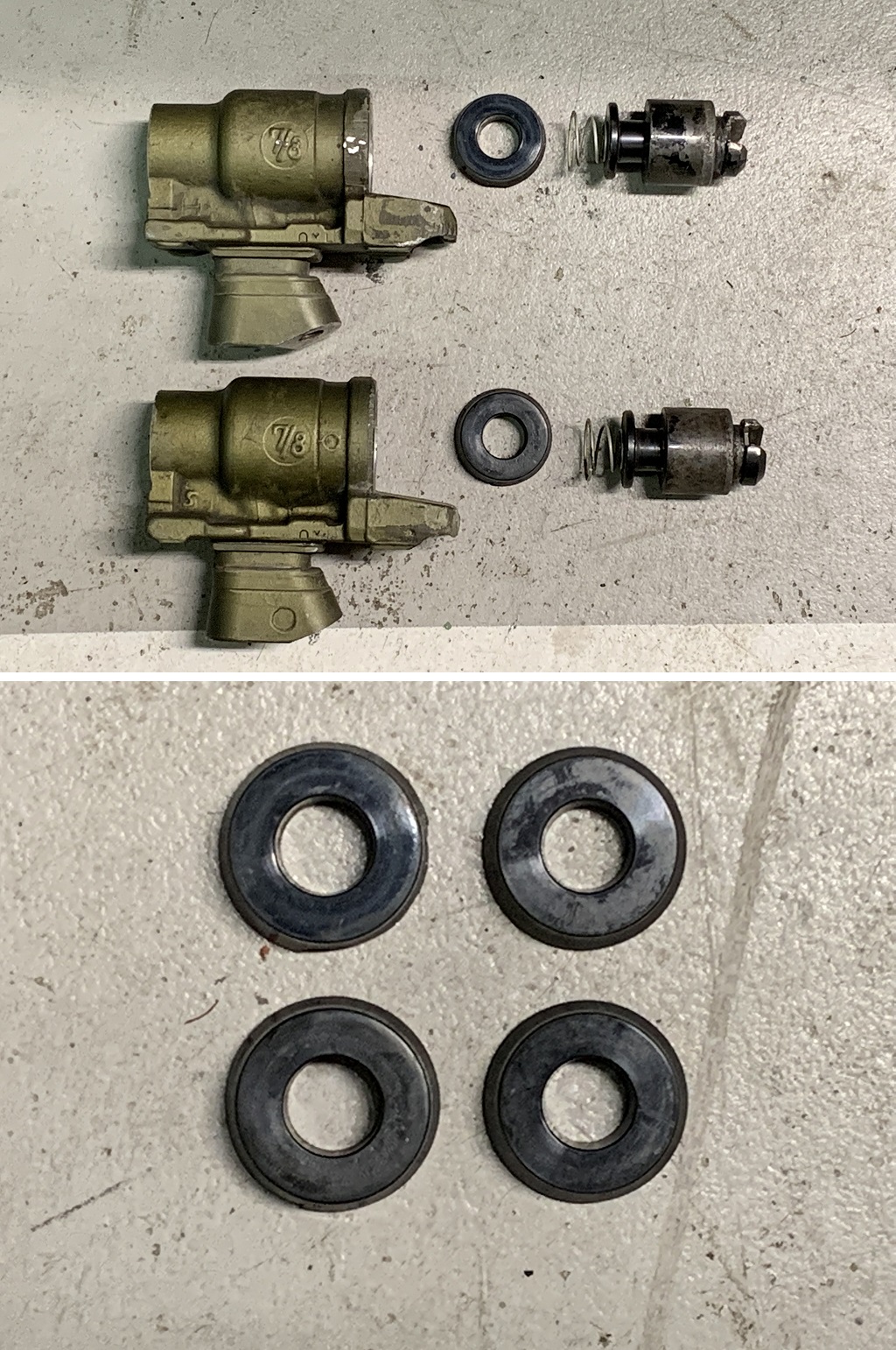 昨年230GXのリヤブレーキのホイールシリンダをS30フェアレディZの社外品を装着しました。ほぼポンで付くのは良いのですが、カップ(の特に内径)が特殊サイズでメンテ時に部品取得に難儀するため、純正カップが装着できる純正品ピストンを探していました。あいにく近年ピストンの製廃が大量にあり、適合品だけでなく流用できそうな類似形状の部品も日産ではことごとく製廃。 やむなく中古を探していました。S30純正シリンダの出物があり、あまり使いこんでなさそうなのを発見、「ピストンが両方とも固着しています。外せる方どうぞ。」の説明。 安価だったので(と言っても競ってしまった)落札。現物が届きました。 確かにガッチリ固着してます。テコの原理で抉ってもダメ、試しに捩じってもダメ。動きません。前所有者でもかなり頑張った跡があります。CRC-556をたっぷりかけて1週間放置⇒変化なし。引っ張り出すのはやりにくいので、試しにプラハンで叩いてみたがビクともせず、かなり強情。⇒バイスで圧縮すると動いた⇒固着は解けたハズだが抜けない⇒常温では抜けないと判断、温め作戦に変更。バーナーが故障していたので、300Wハンダコテで十分加熱後、抉ってようやく抜けました。 抜け始めたときの手応えから、サビ等が原因の単なるピストン〜シリンダ間の固着ではなく、カップが酷く干渉している感じがします。ピストン、カップをよく見ると・・・・カップがデカイ・・・ そりゃ固着しますわナ。。。 添付画像の下のカップ4個は、左側2個が摘出したもの、右側2個が手持ちの新品。 シリンダ内径と手持ちの新品カップは7/8インチ。明らかにカップが1サイズデカイです。ということは摘出したカップは1インチ。 グリスをたっぷり塗れば入ってしまうかもしれませんが、すぐ作動不良を起こすはず。このシリンダは摺動部の摩耗が非常に少なく、程度はよさげなのですが、この摘出作業でやや残念な状態に。 まぁ、しかし機能的には影響なく使えそうです。少なくともピストンは行けるので、次回カップ交換時の候補とする予定です。その前に社外ピストンに合うサイズのカップを見つけたいとも思っています(サイズは測り忘れた・・・)。 ![]() 20220619.jpg/605KB |