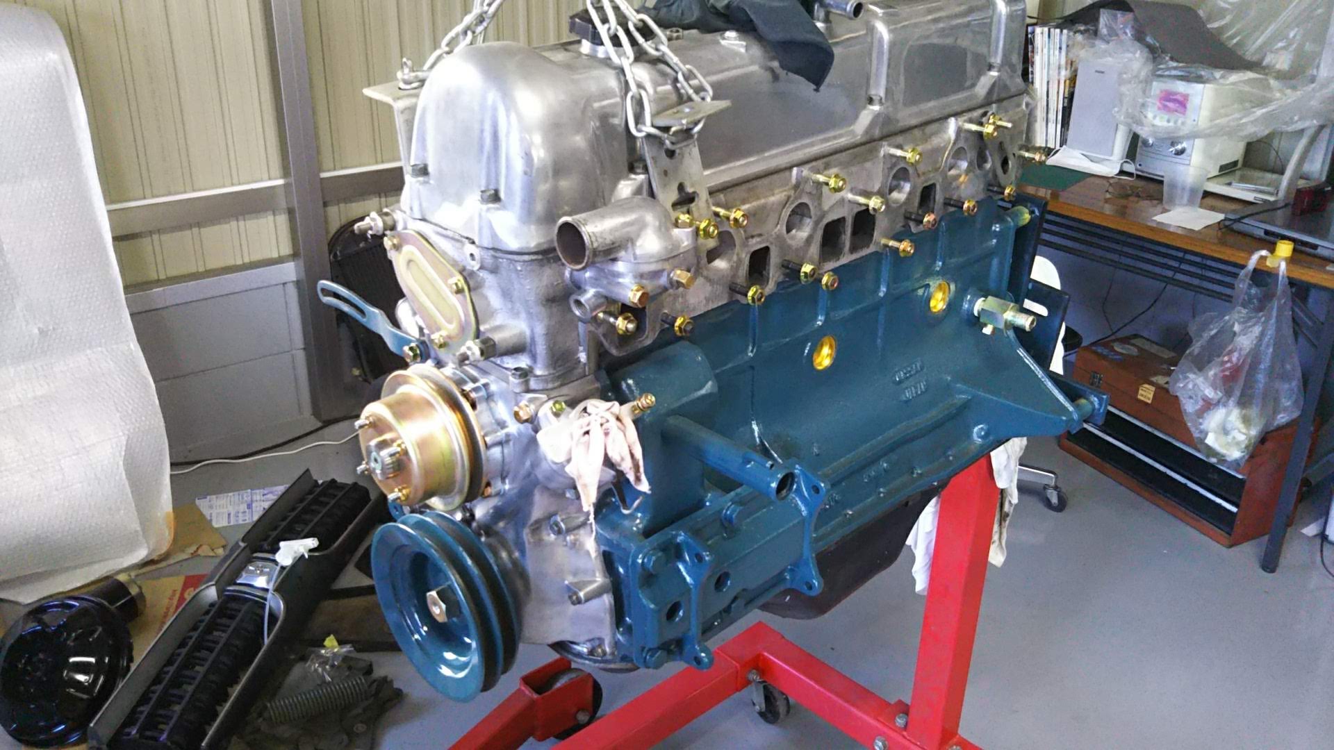 ヘッドライトのハウジングの樹脂製のナットは細心の注意をはらい外して再利用です。 クロメートメッキは永田さんもおっしゃる通り下地処理が肝ですね。自分も800番〜1000番で仕上げた後、ピカールフィニッシュです(笑) 私事ですが、5年ほど前に念願のガレージを建てその際エンジンを降ろしエンジンの仕上げ及びエンジンルーム内のディティーリングを施しました。 エンジンについてはW/Pプーリー他フーエルデリバリーパイプ等のクロメート、ブロックは亀有エンジンワークスから出ている日産エンジンブルー(スプレー)仕上げです。自分の場合クランクプーリーもアイドラプーリーもすべて同色に塗っちゃいました。 DSC_0145.JPG/308KB |