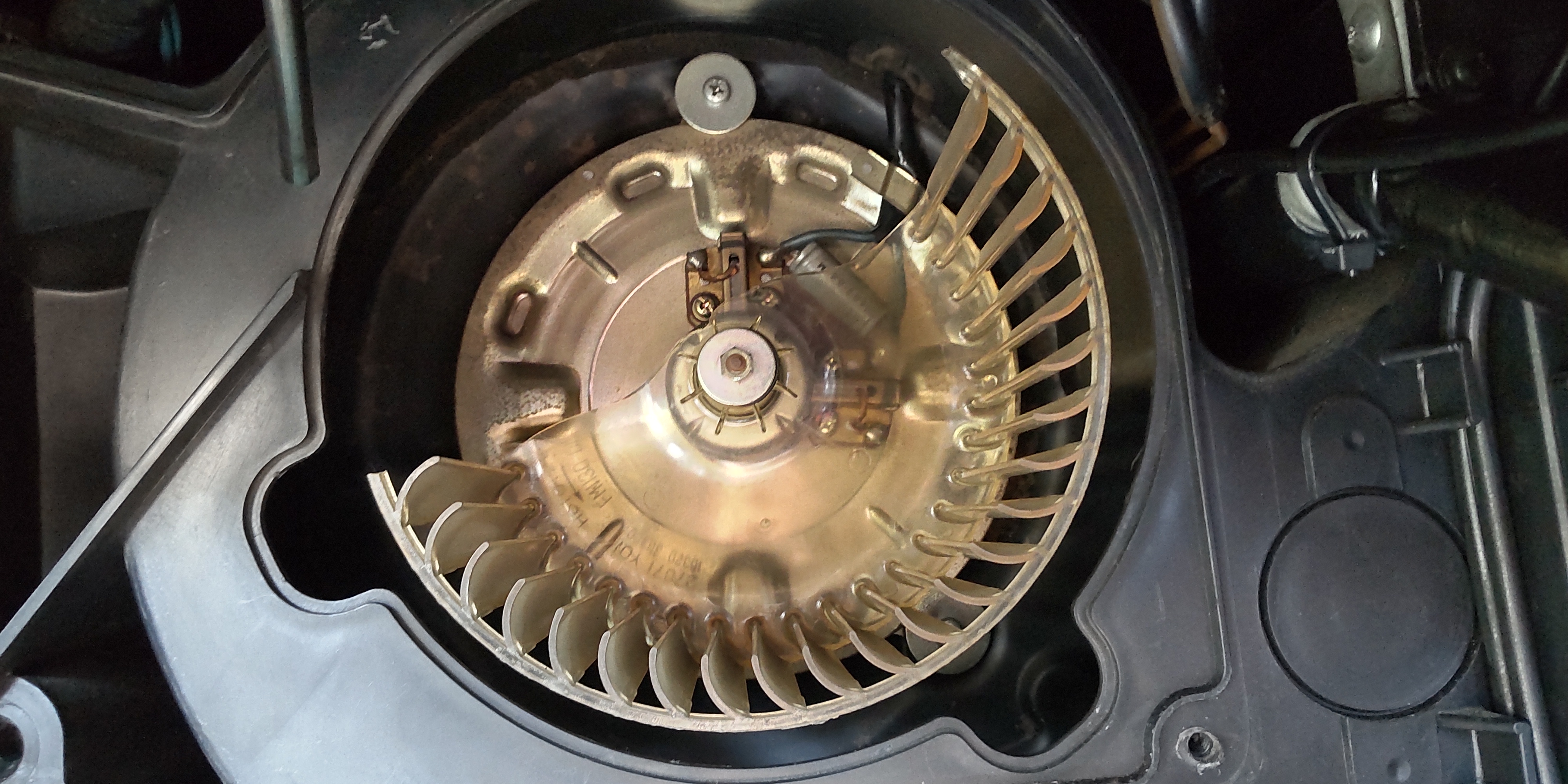 燃料ポンプの件では、アドバイスなどありがとうございます🙇ポンプについては発火の恐れもある為、検証出来ておりません、時期を見て確認しようと思います。 そして、さらなる追い打ちでブロアファンの破損に見舞われました。 ファン起動してしばらく走行していたらバキンと音がしてすぐにファン止めましたが、分解したら割れていました。恐らく前回ブロア周りの配線確認時に取り外して付けた際に若干クラックがあったように見えまして、そこが遠心力に負けて破損したものと思われます。。 当然、純正品は製廃の為ありませんでした。 代替え品やブロアファン修理など試行錯誤しようと思いますが、アドバイスあればご助力頂きたいです。 よろしくお願い致します。 DSC_0402.JPG/2213KB |