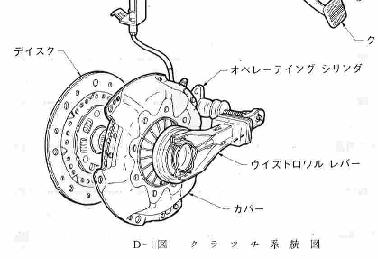 | 230 | 前期 | 1.レリーズ系が手動調整式の為、クラッチディスクの磨耗状況によって調整しなければならない。 2.クラッチカバーを新品に交換すると、現在供給される部品はL26用と共通(ディスクを押しつけるスプリングの圧力が500kg)の為、ペダル踏力が大きく(重く)なることがある。 |