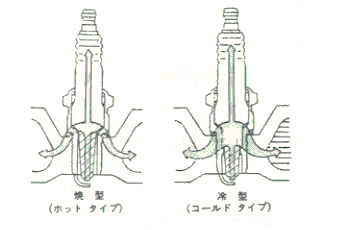 点火プラグが十分に性能を発揮するには、電極付近の温度をある範囲内で維持する事が必要です。適温を維持することで燃焼時に発生するカーボン(煤)を焼き切る“自己清浄作用”が働き、これの堆積を防止します。もし温度が低いと自己清浄作用が働かず、カーボンが溜まり、俗に言う「かぶった」状態になります。カーボンは導体ですから電気が逃げてしまい(沿面放電を起す)、本来の場所で火花が飛びにくくなってしまうのです。逆に温度が異常に高いと、電極が焼け爛れてしまうだけでなく、“プレイグニッション(早期着火)”と言って、プラグが熱源となって火花が飛ぶ前に燃料が着火してしまいます。これによりノッキングが発生し、エンジン破損へ発展するのです。