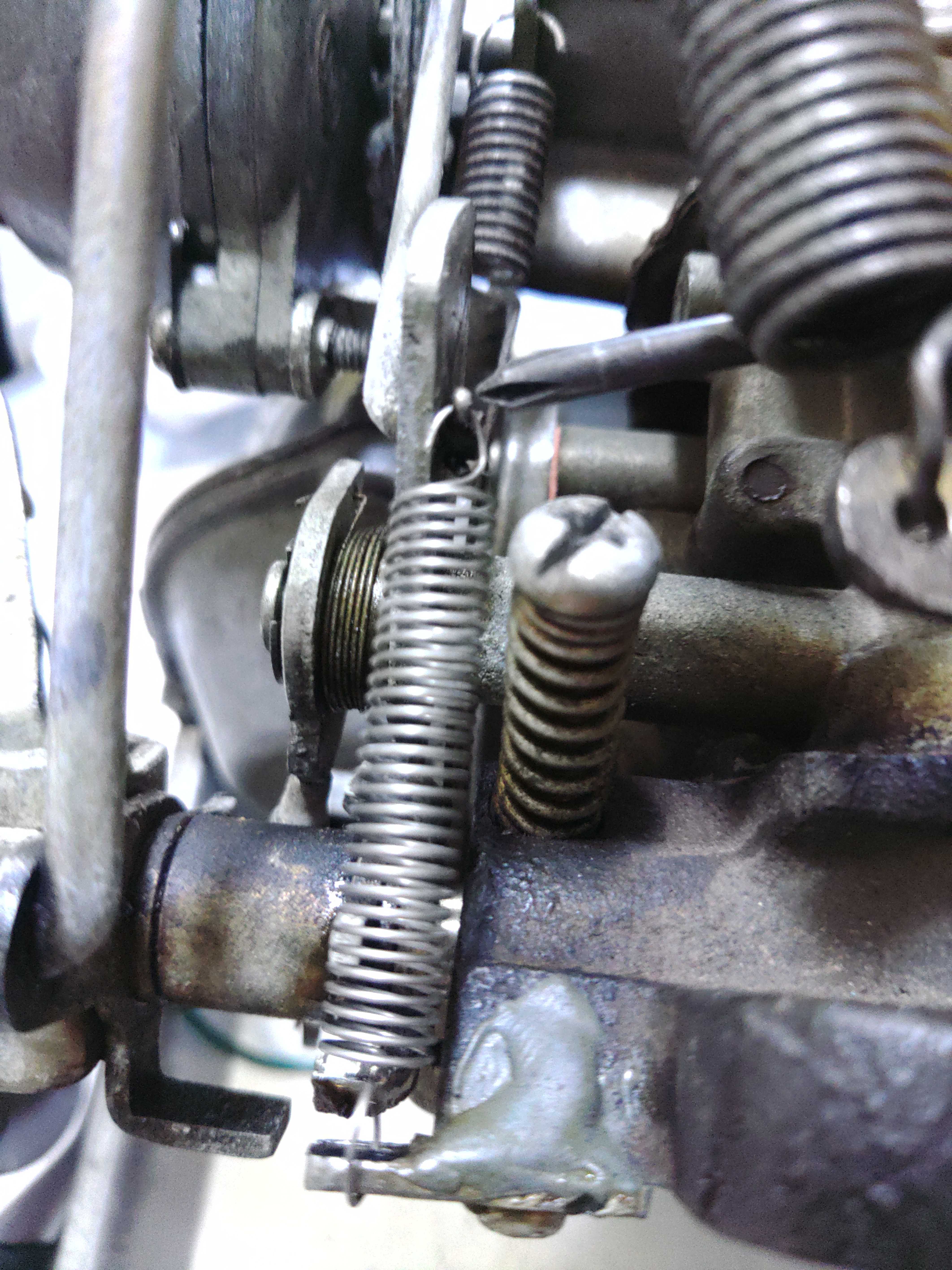 〜〜〜中略〜〜〜 しゃちょさん>久々の書き込みありがとうございます。なるほど、完爆ダイヤフラム破損時の代替案ですね。オートチョーク付きキャブの場合は基本的にこの完爆ダイヤフラムがある訳ですが、マニュアルチョークの場合はこの機構がありません。ノブを少し戻すことでこの問題は解決します。全く同じではありませんけど、少し近いのかなと思いました。 >失敗だったのが使用したスプリングの強さ等を記録するのを忘れてしまいました。 これ、スプリングの線径、コイル径だけでも判ると助かります(ボツになったスプリング計測結果からの推測でも結構です)。画像を見た感じでは目測で0.5mmくらいの結構柔らかめスプリングに見えました。コイル径は外径で8〜10mmくらいとか?? |