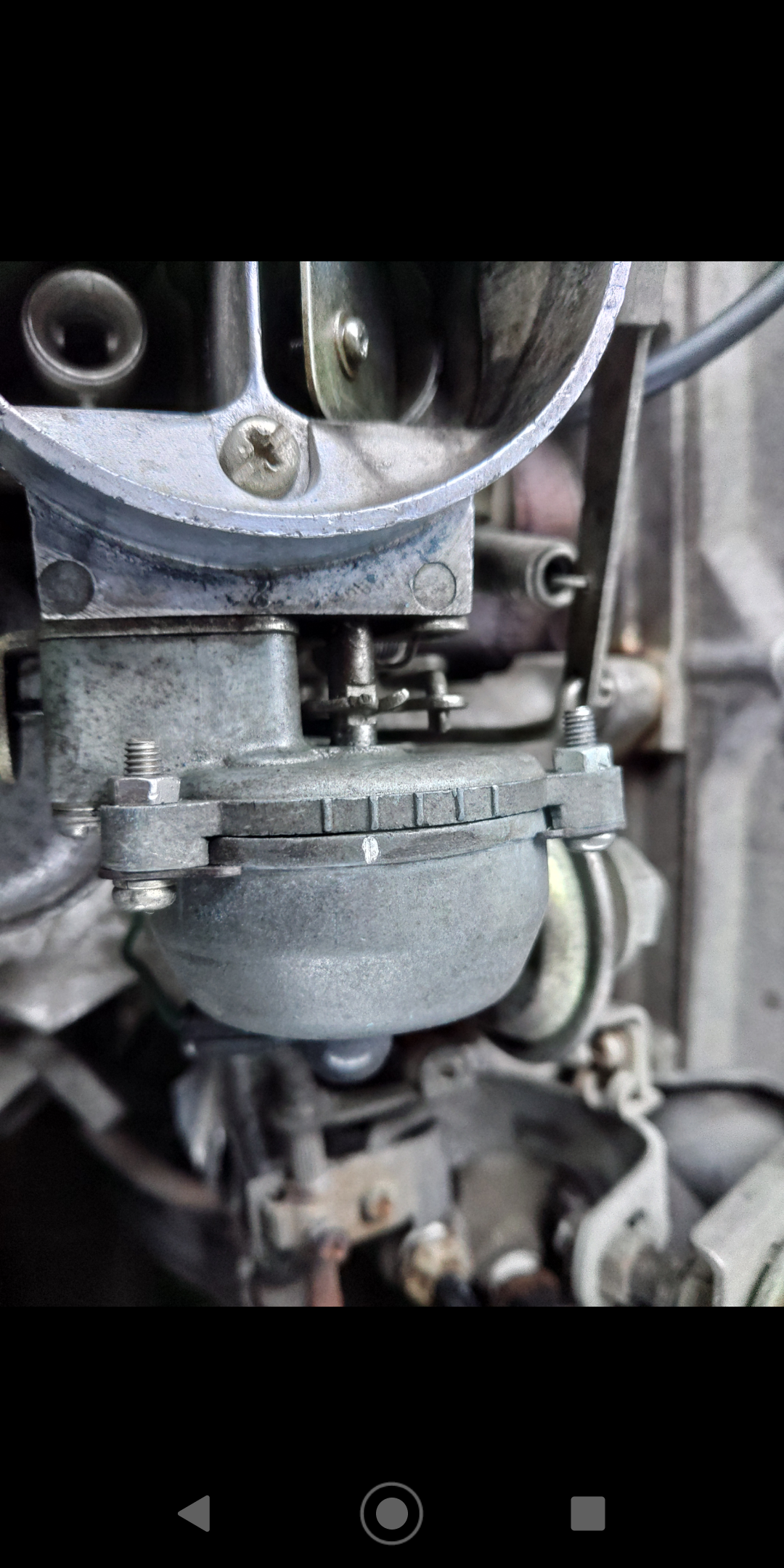 しゃちょさんの書き込み拝見しまして、私のも寒い時期の暖気が苦手なので、チョークバルブがどんな動きをしているのか点検してみました。ながたさんの「自分でメンテ」ページには、かかる瞬間大きく開く、とあるのですが、かかったころにちょっと開くぐらいです。完爆ダイヤフラムの交換歴があるのかは見た目ではわかりません。 うまく貼れていますでしょうか…? 始動性は良いのですが、水温計が動き出してから安定するまでの間で調子が悪くなり、アイドルアップが効いている回転数でも不安定でエンストするほどです。そのころスロットル付近には霜がついています。(温調エアクリーナーは暖気を取り込んでいます) |