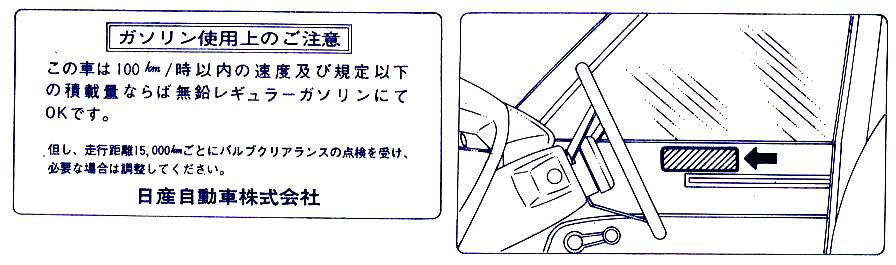 昭和49年11月24日付通産省通達「ガソリン無鉛化対策について」を元に、日産では同11月末に以下のような対応方法を発表しました。